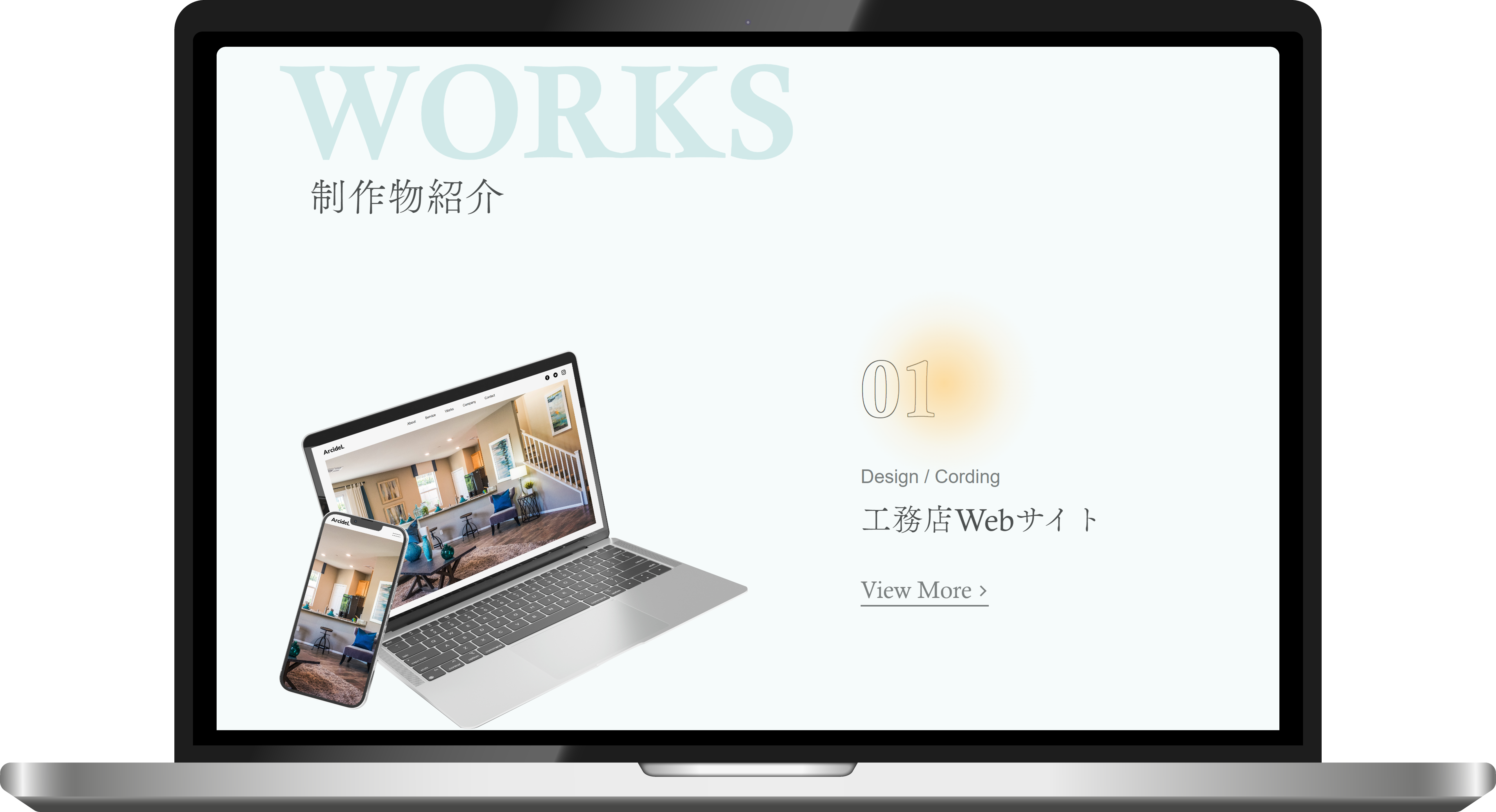 - トップページでは制作物の写真を大きめに掲載し、制作物の雰囲気が伝わりやすいようにしました。